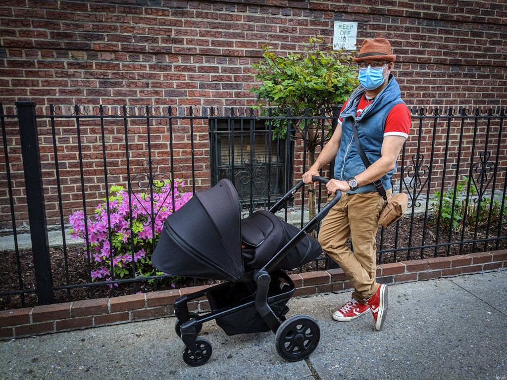 Давайте в первую очередь поговорим о коляске. На фото выше она в сложенном виде в нижней части кадра. Мы заранее думали, что захотим путешествовать с Айей, а потому сразу купили нетяжёлую коляску, которая хорошо складывается. Для нас это наша основная, каждодневная коляска, которую мы использовали с Айиного рождения. На этой фотографии я ещё даже не 24 часа как отец:Коляска удобная, манёвренная, и крепкая. В сложенном виде без проблем помещается в любой багажник, или даже на заднее сидение машины. Производитель рекламирует как здорово её носить на ремне через плечо (ремень действительно удобный), но по-моему она слишком тяжёлая для того, чтоб так долго прогуливаться.