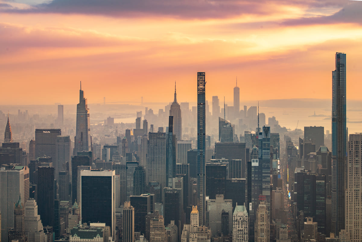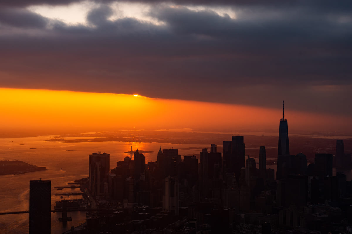 Нью Йорк на закате с воздуха
