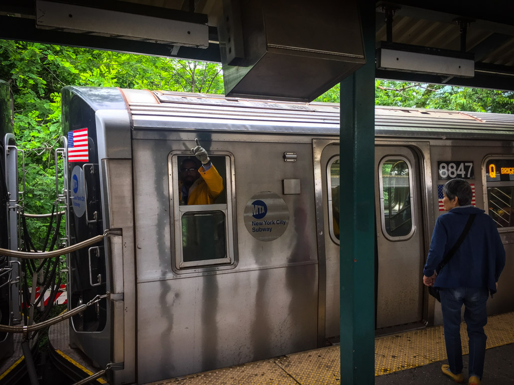 Одна из самых страшных ошибок, которую может совершить кондуктор нью-йоркского метро, это открыть двери состава так, чтобы напротив хоть одной из них не было платформы. Именно поэтому, как только поезд останавливается на станции, прежде чем открыть двери, проводник должен выглянуть из окна, и пальцем показать на полосатую доску!
