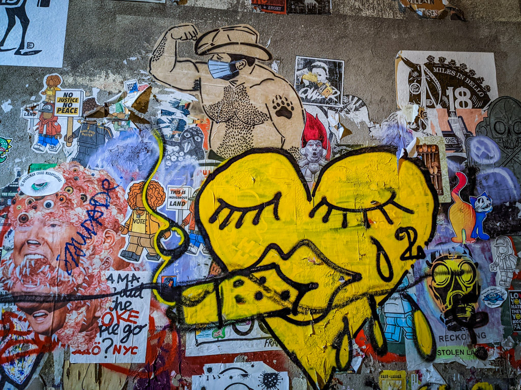 2. И Freeman Alley - одно из них. Большое количество здешних художников не рисуют на стенах, а клеят на них готовые наклейки. Часто, клеят их поверх чего-нибудь старого.