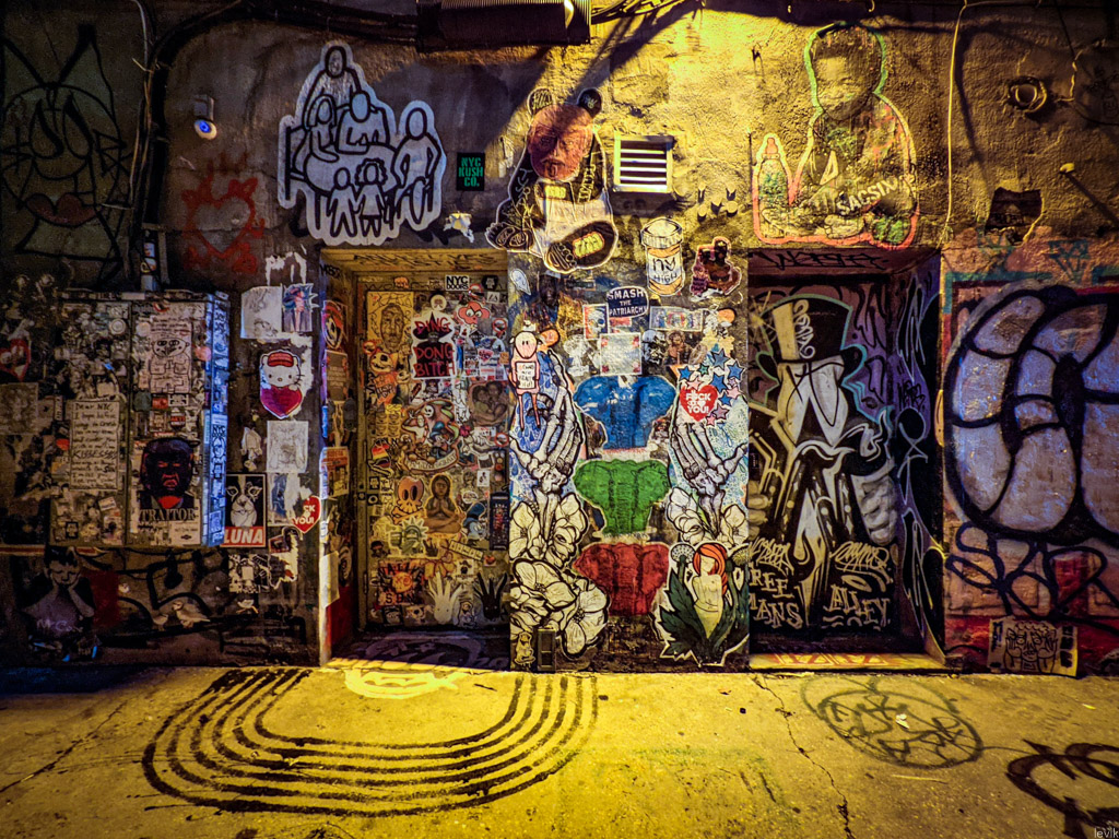 А во вторых, это своего рода мастерская и галерея для стрит-арта. Стены Фриманскоро Переулка служат живым холстом для большого числа уличных художников. На этой неделе я заглянул сюда вечером, и хочу вам показать, как выглядит это необычное пространство: