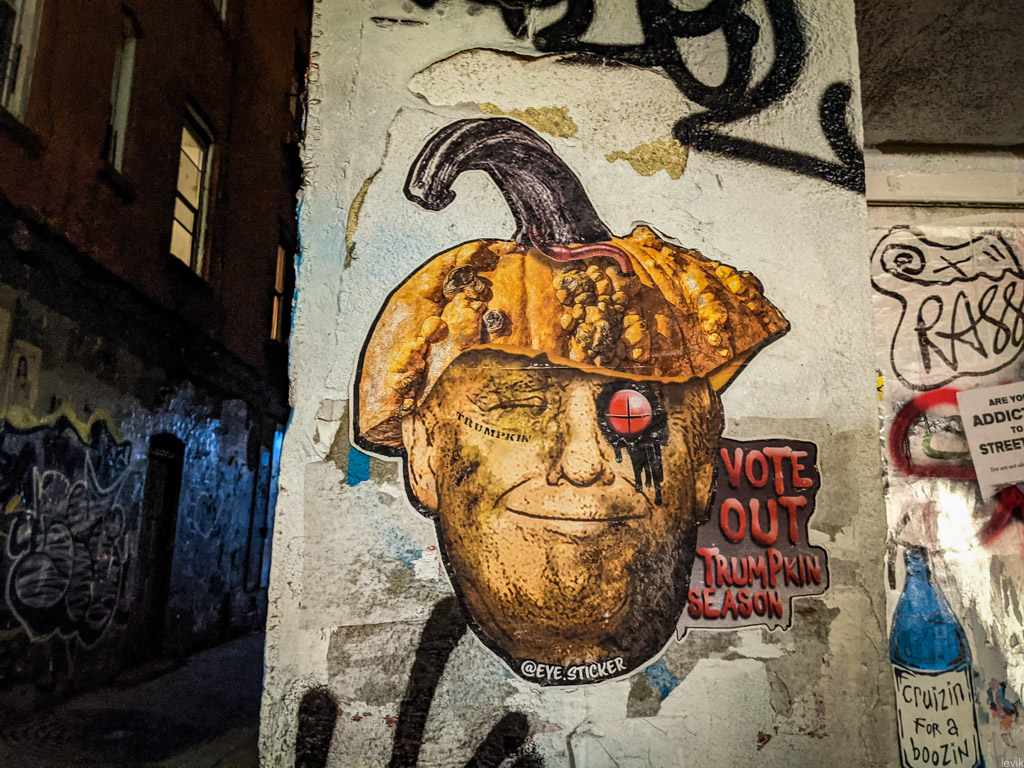 12. Многие из этих работ явно разместили ещё до выборов: "Голосуй, чтоб закончит сезон Трампа-тыквы".