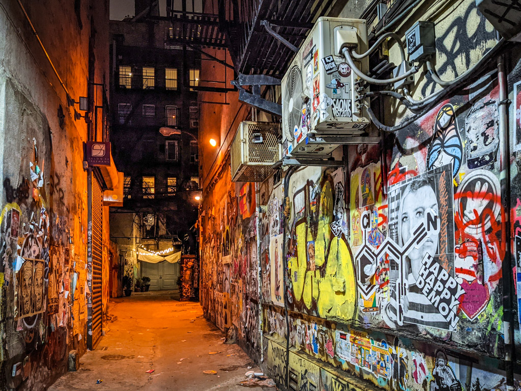 Внимательные читатели моего блога знают, что несмотря на образ, созданный городу киношниками, у нас в Нью Йорке практически отсутствуют переулки. Таков план. Их можно пересчитать на пальцах, и все они находятся в старой части даунтауна, южней Хаустон-стрит. Один из этих редких переулков - Freeman Alley - ещё более необычный, чем все остальные. Во-первых, он тупиковый.