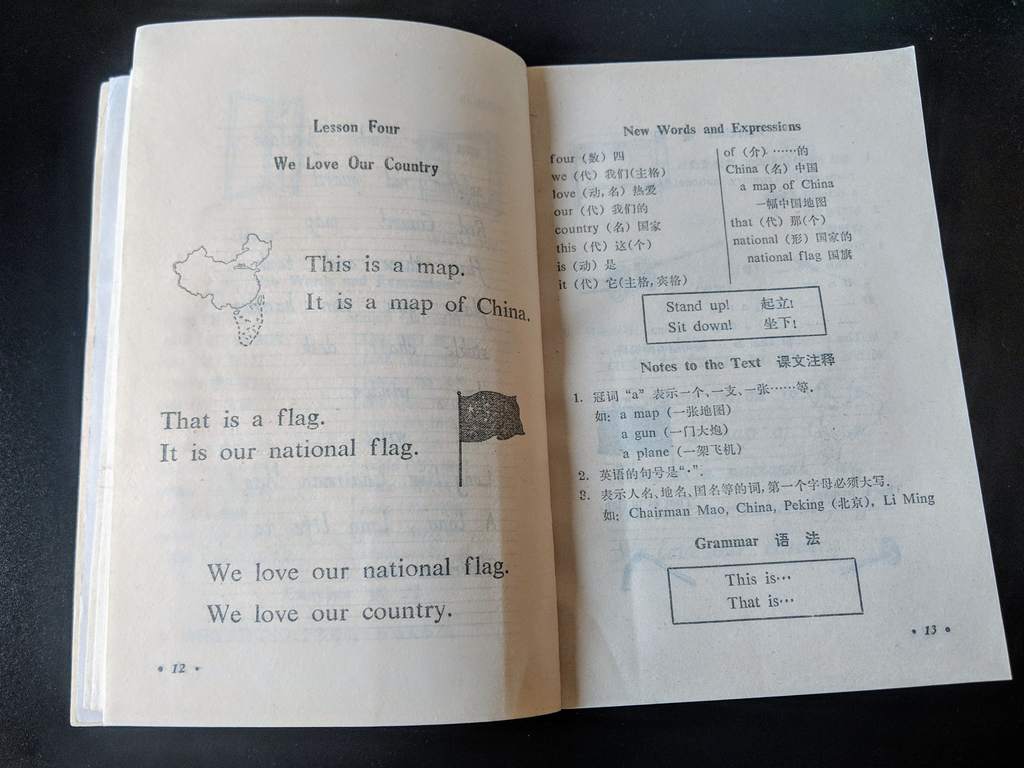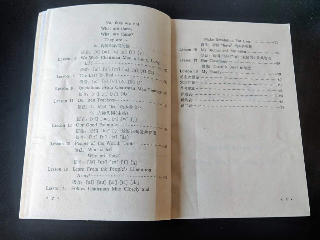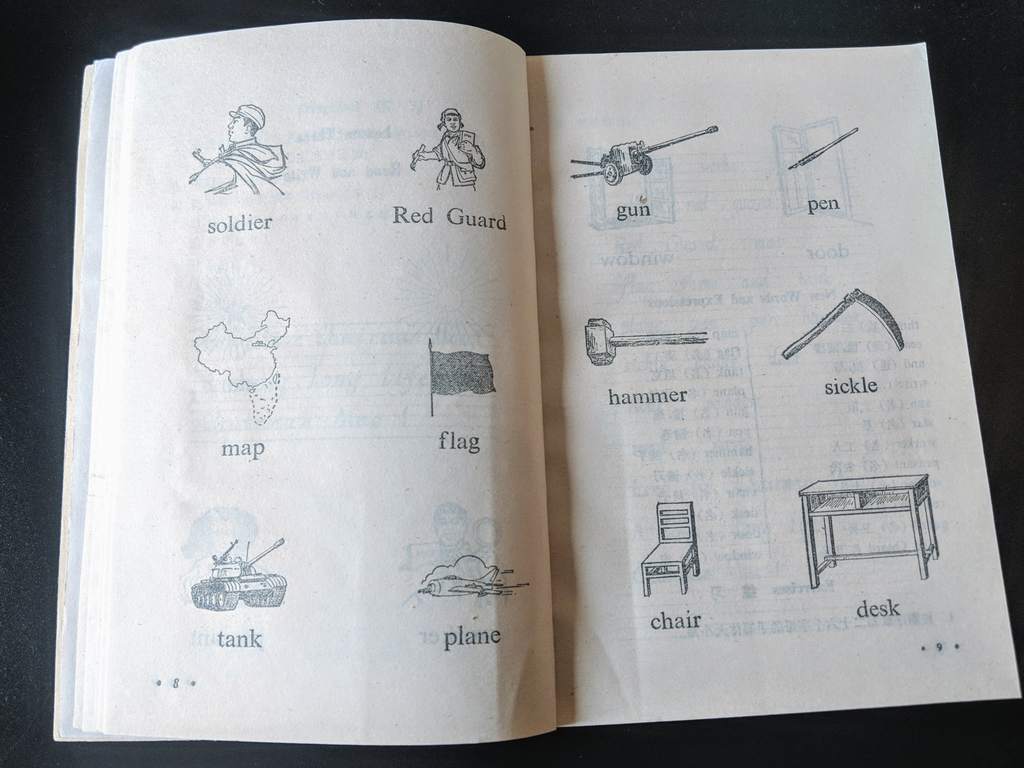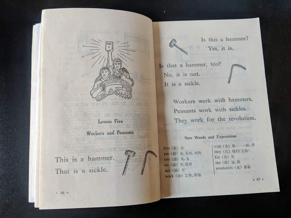 Это небольшой учебник английского языка (в нём около 90 страниц), выпущенный в районе 1970, когда в Китае расцветал культ личности Мао, а красные дружины крепких молодых людей искали контрреволюционеров среди интеллигенции.