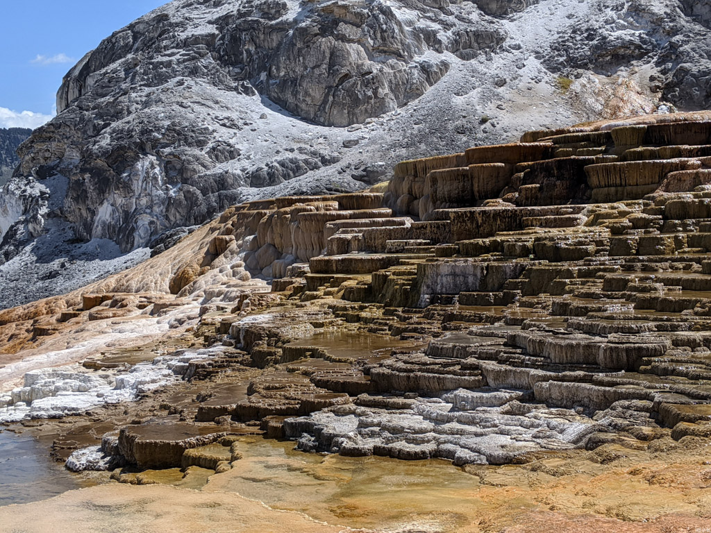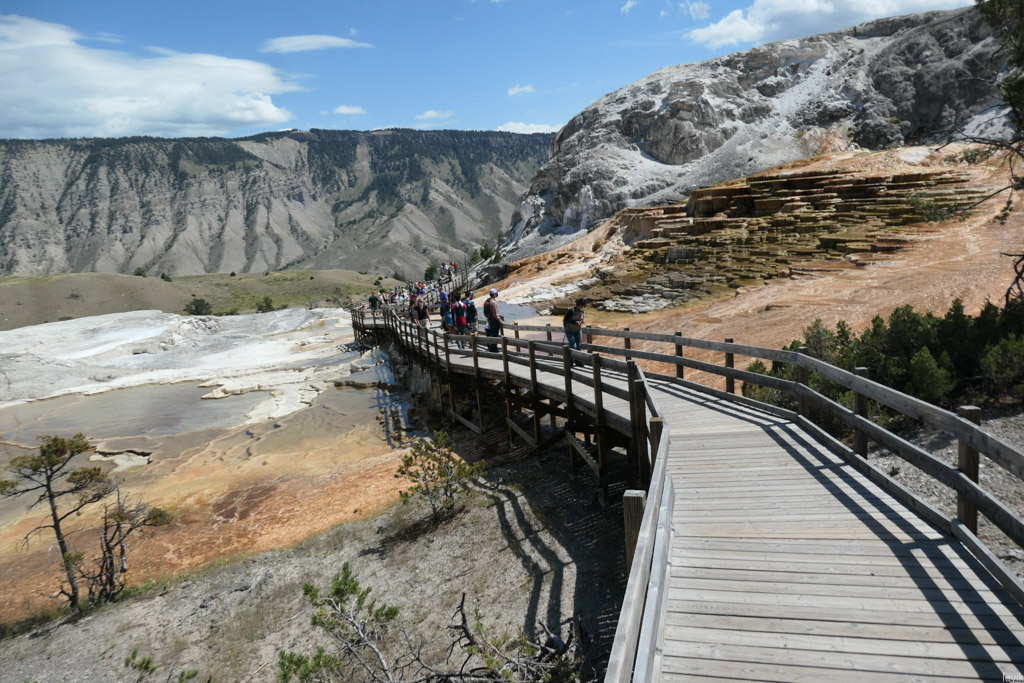 52. Другая супер-популярная точка - Мамонтовые Источники на севере парка, рядом с въездом из Монтаны. Там очень красивые ступенчатые образования. Об этом месте я уже подробно написал.
