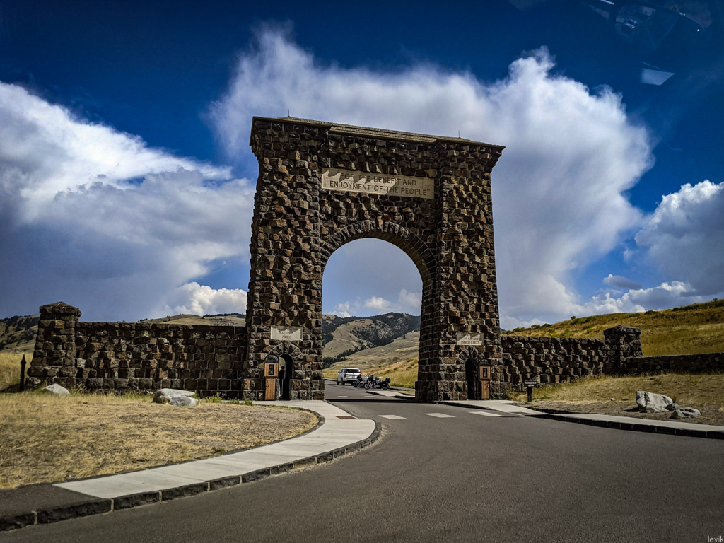 4. Есть также въезды с севера (из штата Монтана), запада (Айдахо), и востока (тот же Вайоминг). На северном въезде стоит Арка Рузвельта, краеугольный камень которой заложил этот харизматичный президент в 1903 году. На ней цитата из указа 1872 года, объявляющего Йеллоустоун национальным парком: "В пользу и на радость народа".