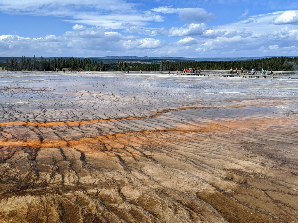 50. Ещё одно главное и непропускабельное место в Йеллоустоуне - красивейший призматический источник. К сожалению, мы его пропустили. Вернее, пропустили главный красивый вид на него с верху. Пишу сейчас об этом, и снова обидно становится, насколько глупо всё вышло.