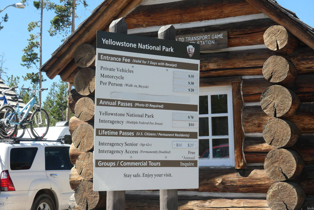 2. Начнём с того, что как и со всеми национальными парками, за въезд в Йеллоустоун надо платить. Пропуск на неделю стоит $35 за одну машину. Но мы решили жить на широкую руку, и купили годовой абонемент во все парки страны за $80. Это особенно имеет смысл в Йеллоустоуне, так как там сравнительно недалеко расположен другой парк - компактный но очень красивый Гранд-Титон, в который мы тоже заезжали. Отдельные пропуска в оба парка обошлись бы нам в $70, а тут за $80 мы получили абонемент, который до августа будет открывать нам