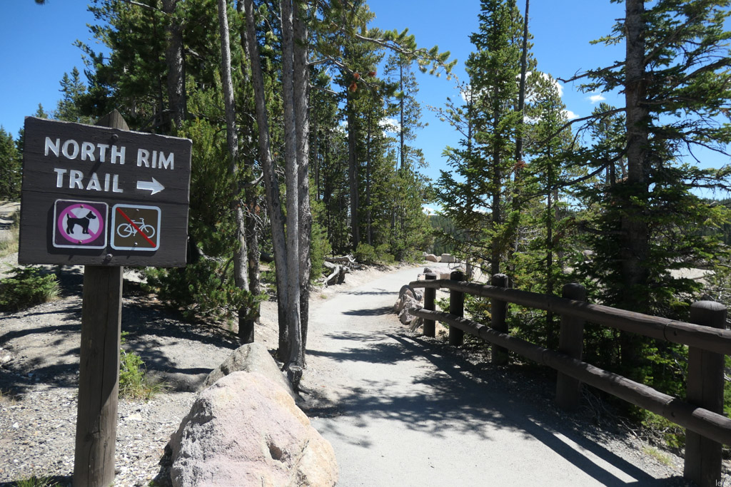 46. Вдоль северной кромки идёт пешеходная тропа. Кажется, вдоль южной тоже есть, но мы там не были - по моему, северная популярней, и она уж точно более доступна из туристического городка Canyon Village.