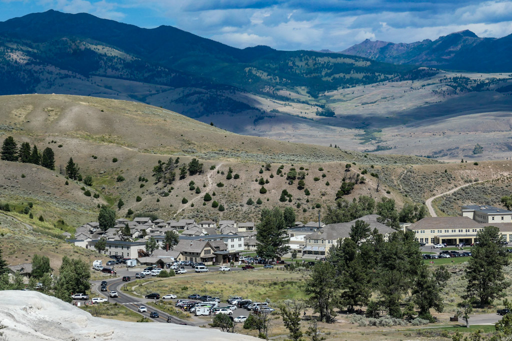 Итак, как я говорил, Йеллоустоун довольно большой, проехать его с севера до юга займёт пару часов, а то и больше. Так что в основном посетители приезжают на несколько дней, и останавливаются в одном из туристических городков внутри парка. Это недешёвый ночлег, но если уж вы приехали сюда издалека, то мне кажется, он того стоит - это лучше, чем останавливаться возле въезда, и переть туда-обратно по часу каждый день.