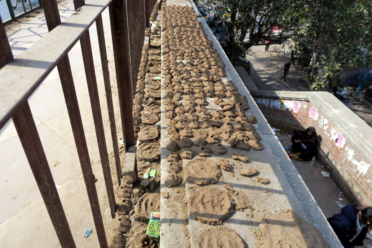 Готовые лепёшки выкладывают на улицу подсушиться. Например, эти конкретные разложены в самом центре Дели, у главного вокзала - в Дели вообще на улицах очень интересного всего можно увидеть. Сушатся такие лепёхи недолго - несколько часов на солнышке, и всё готово.