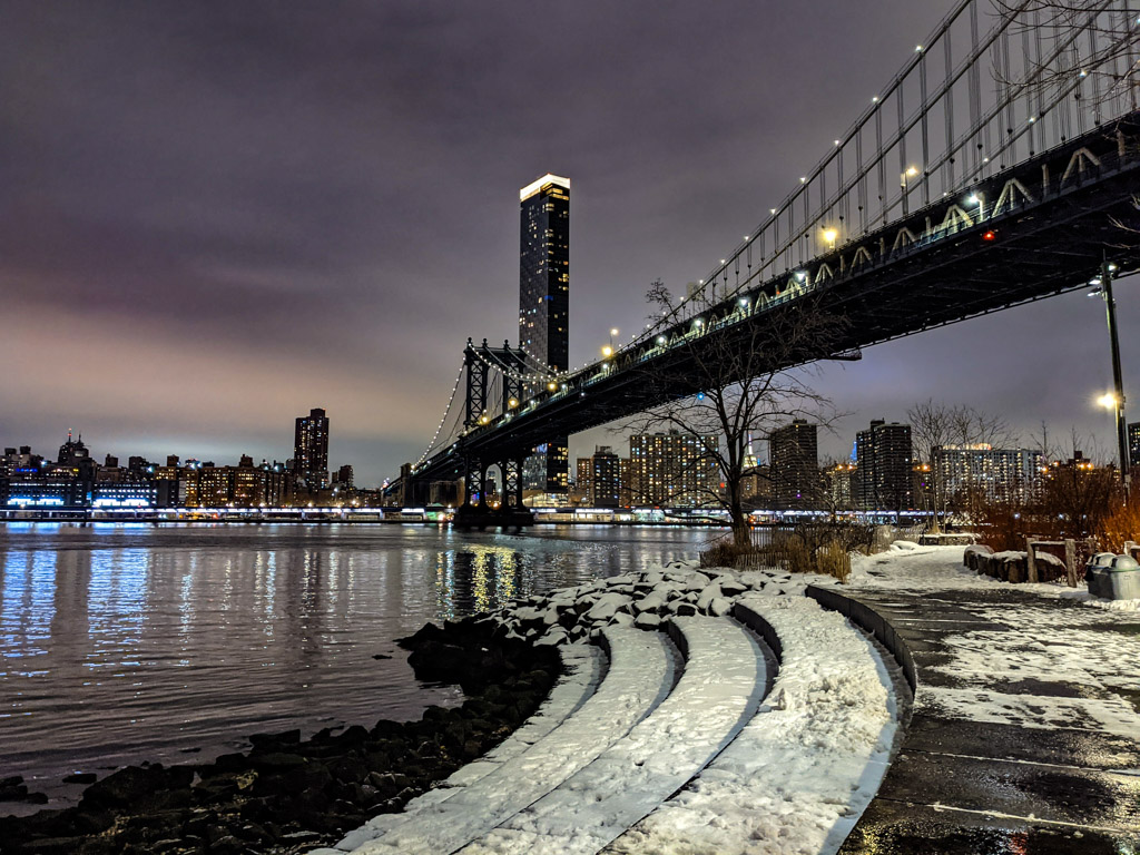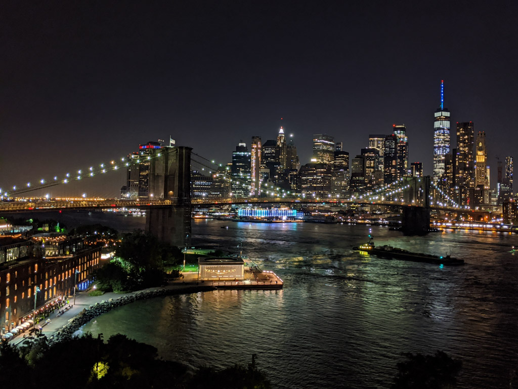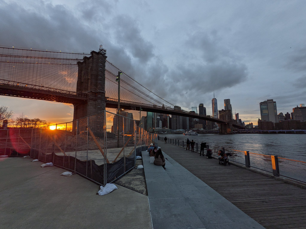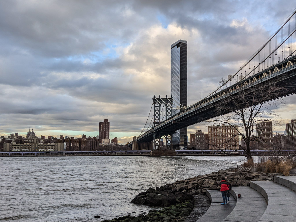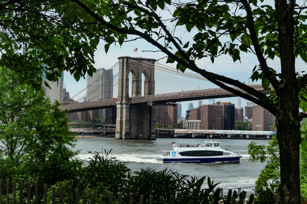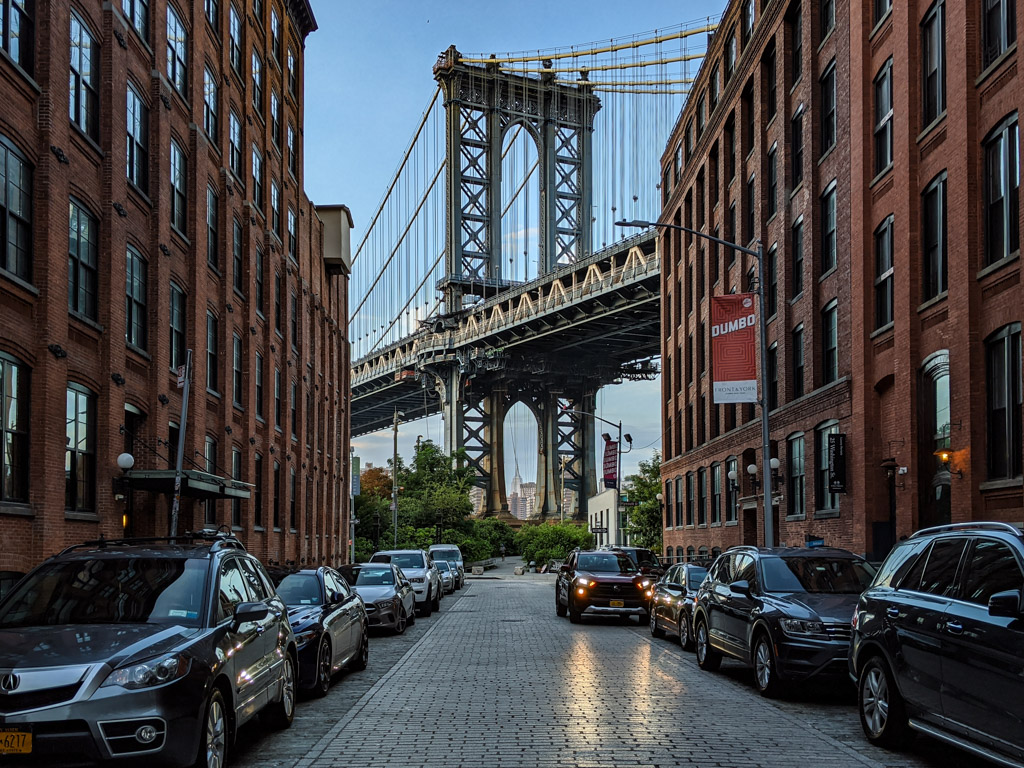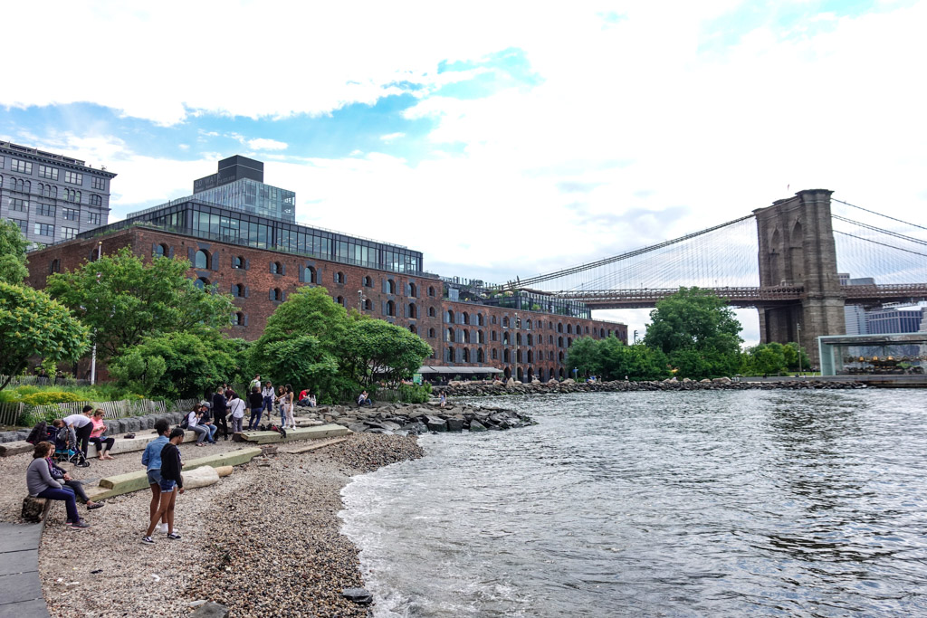 По мне, именно это и есть настоящий Нью Йорк: Ист Ривер, вид на небоскрёбы, красивые мосты, грохочущее метро, брусчатка, в которой остались рельсы грузовых путей, старые склады, и грамотная городская среда. Ну не красота ли?!