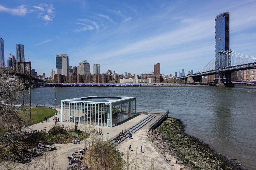 9. Да, тут есть старая карусель, которой в этом году исполняется 99 лет. Она, как и многие в Нью Йорке, приезжая. Начала свой век (ха-ха!) в Огайо в 1922 году. Там она проработала до 1985, когда парк аттракционов, где она находилась, был вынужден закрыться. Тогда в 1980х карусель купили и перевезли в Нью Йорк на реставрацию, которая заняла почти четверть века. Лишь десять лет назад, в 2011 году, отремонтированная карусель была открыта в специально построенном стеклянном павильоне. Сейчас она годро стоит на берегу, с видом на все вот эти красоты.