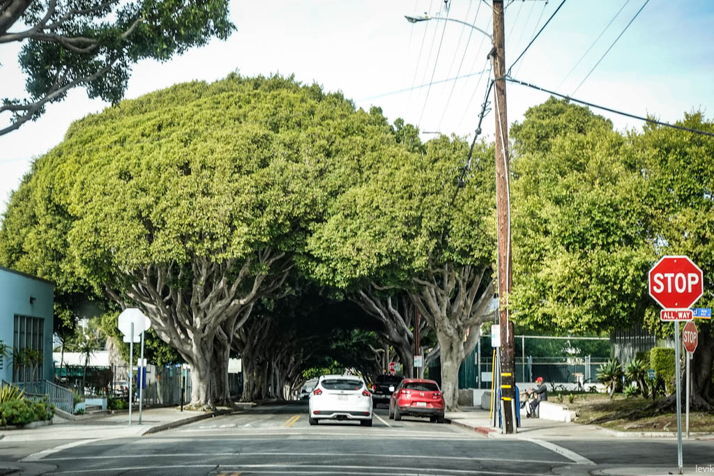 11. ...или вот этой, с тенистыми распростёртыми ветвями, смыкающимися над дорогой? (В хорошем районе Лос-Анджелеса.)