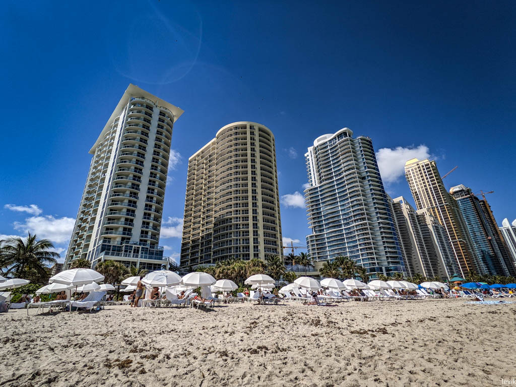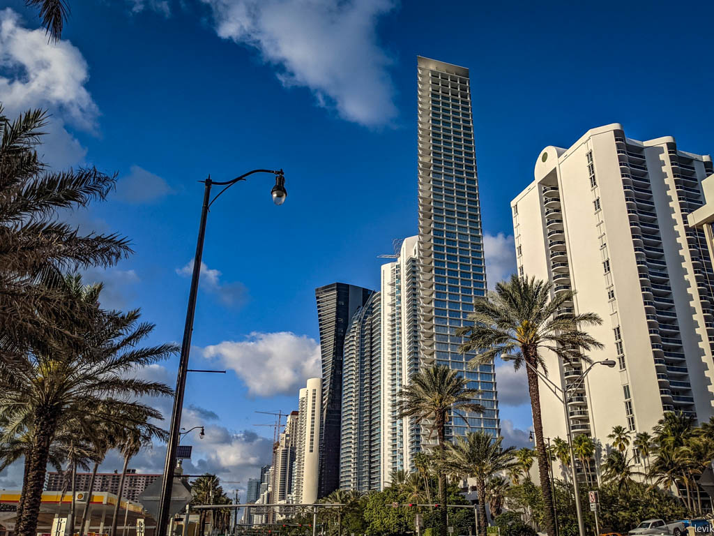 Санни-Айлз за последние лет десять-пятнадцать пережил период бурного роста. На этой узкой полоски земли стали строить довольно высокие (на 20 и выше этажей) здания. Думаю, это особенно бесит жильцов зданий постарше, и этажности пониже, у которых ещё не так давно был прекрасный вид на океан, а теперь - на современную архитектуру.
