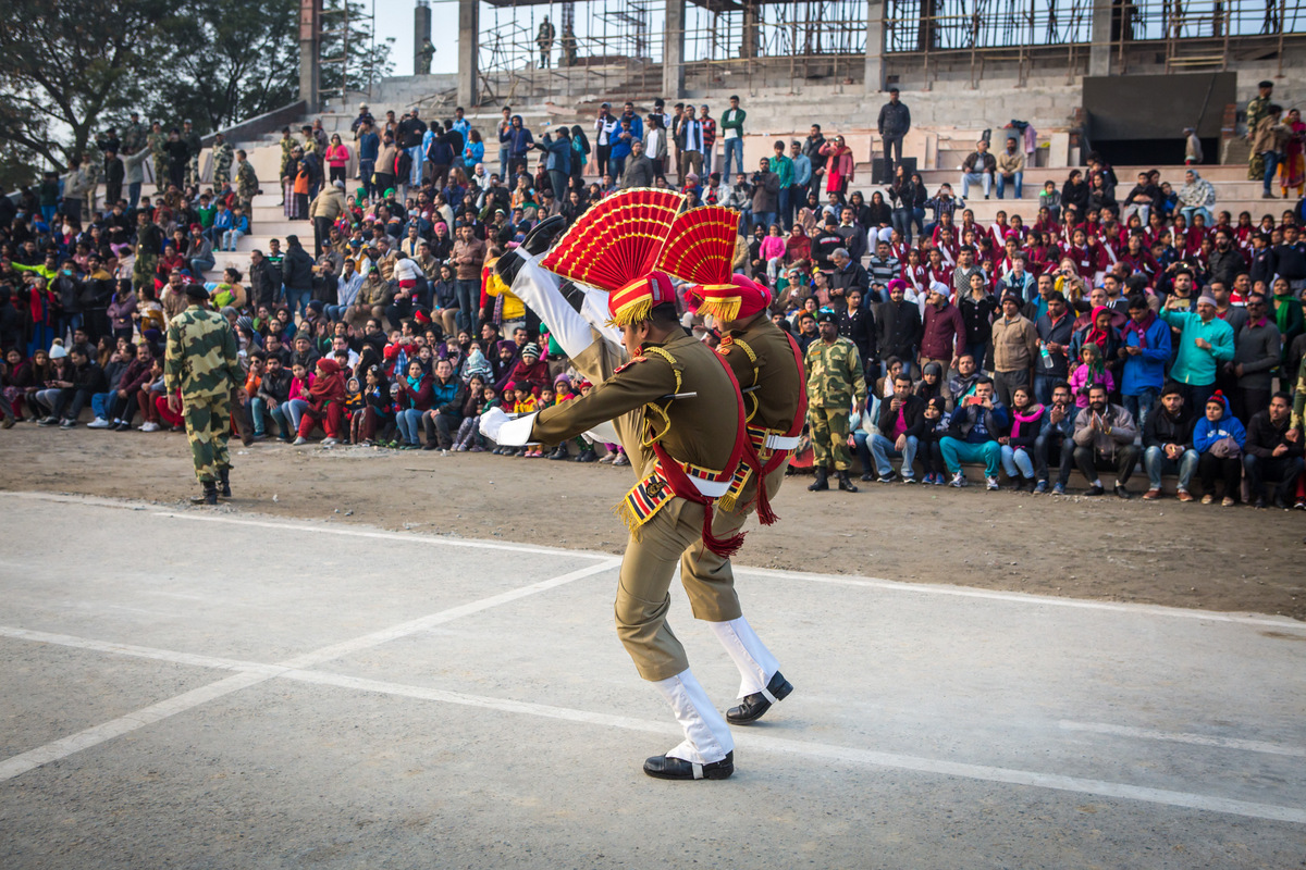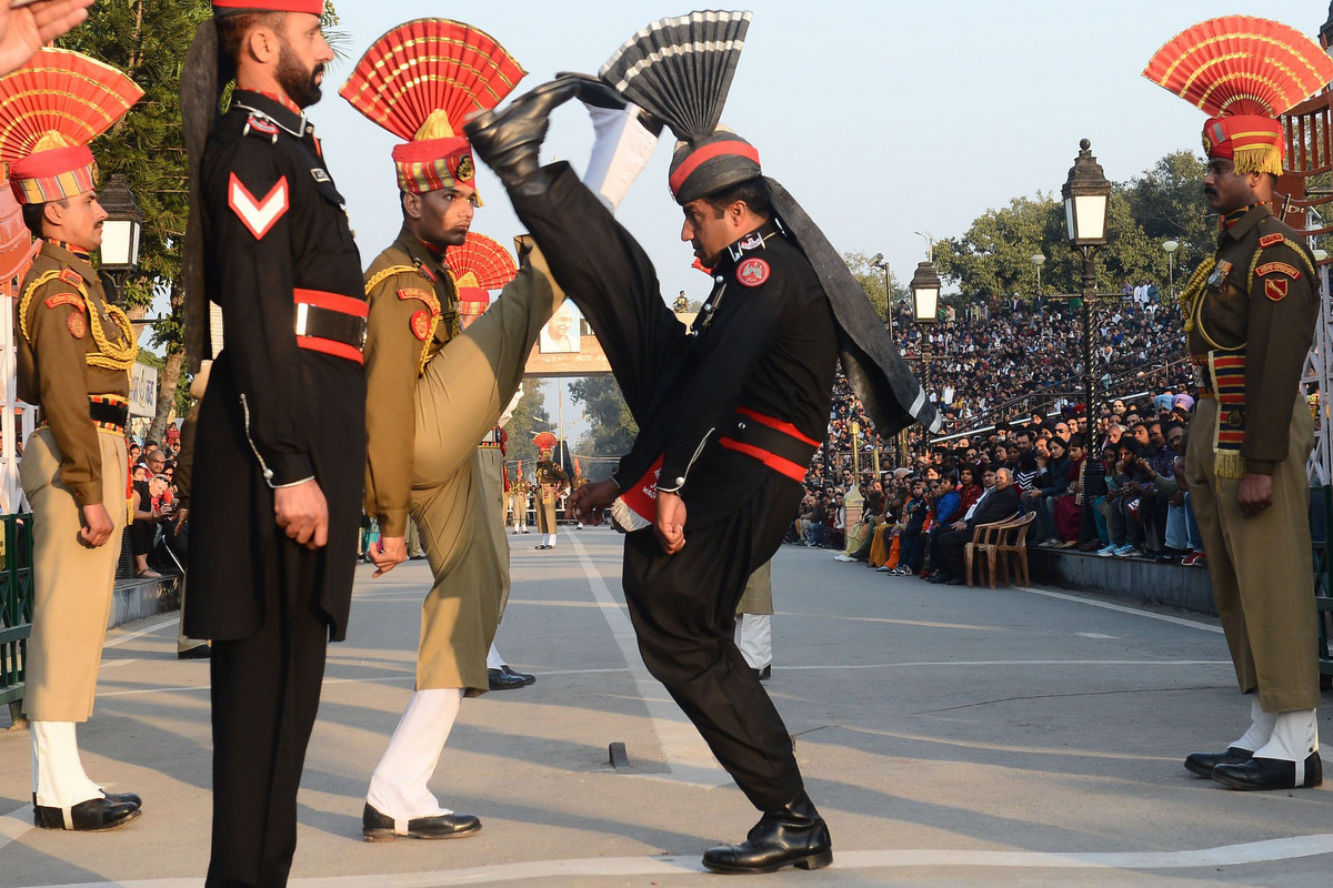 Каждый день здесь устраивают сложную церемонию закрытия границы, в которой отборные пограничники обеих сторон синхронно исполняют нелепые движения. Эта церемония давно превратилась в огромный туристический аттракцион, собирающий толпы зрителей с обеих сторон. И вот почему: