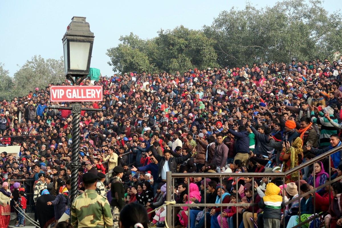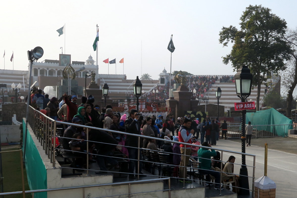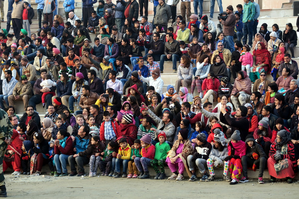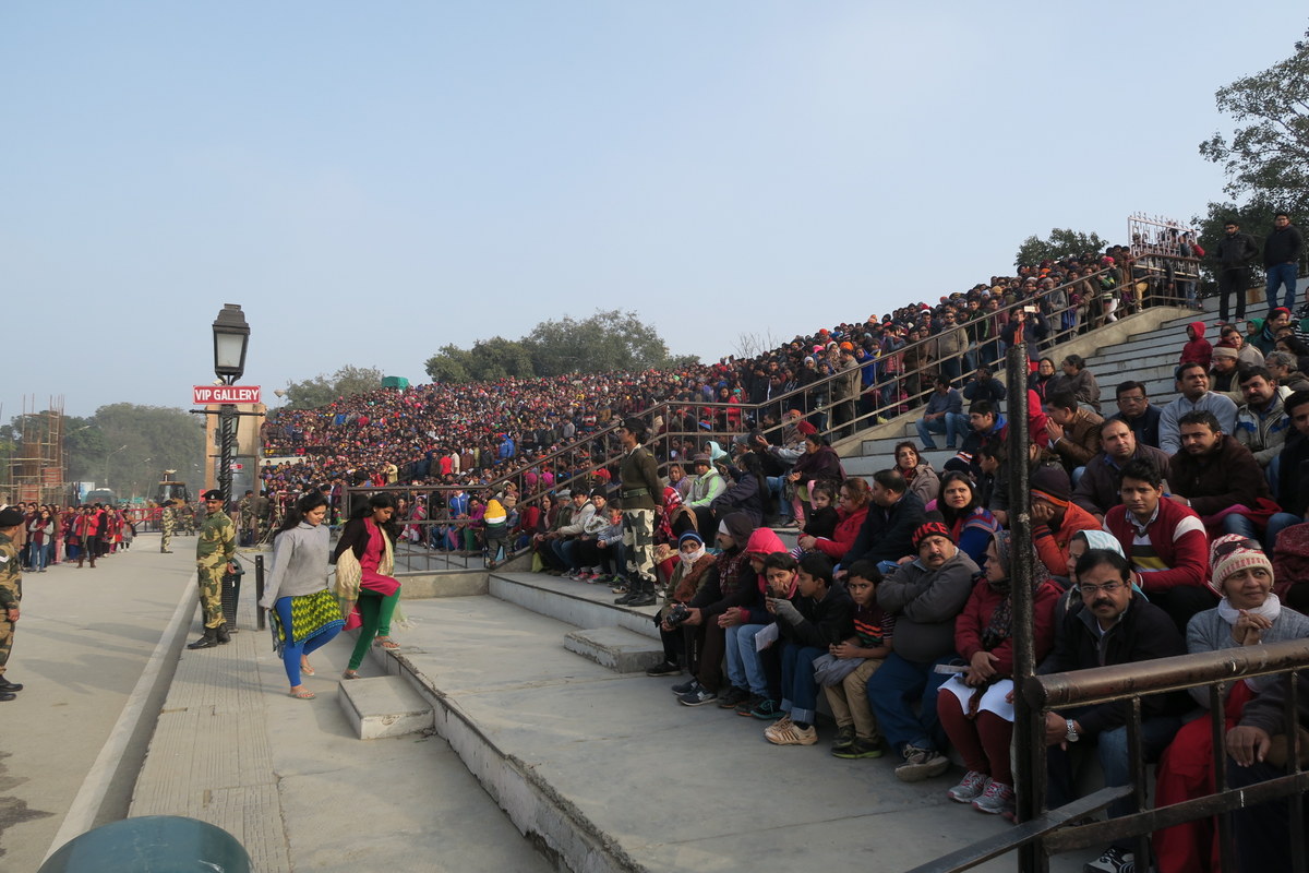 Желающих посмотреть на церемонию много, в основном это внутренние туристы, приехавшие в Амритсар. Индийцы идут на зрелище как на праздник. Перед входом стоят чуваки, готовые за копейки нарисовать индийский флаг на лице туристов, для усугубления патриотического запала.