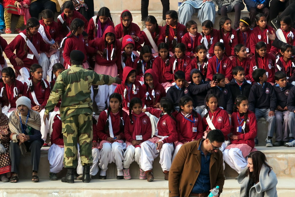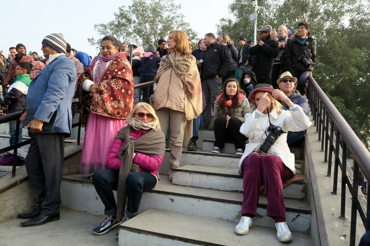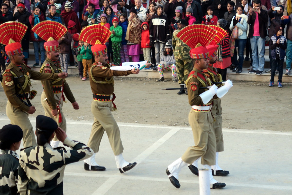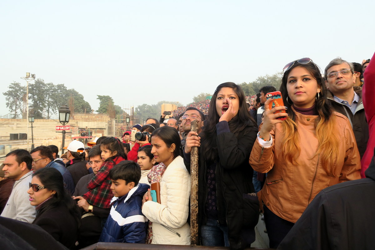 Желающих посмотреть на церемонию много, в основном это внутренние туристы, приехавшие в Амритсар. Индийцы идут на зрелище как на праздник. Перед входом стоят чуваки, готовые за копейки нарисовать индийский флаг на лице туристов, для усугубления патриотического запала.