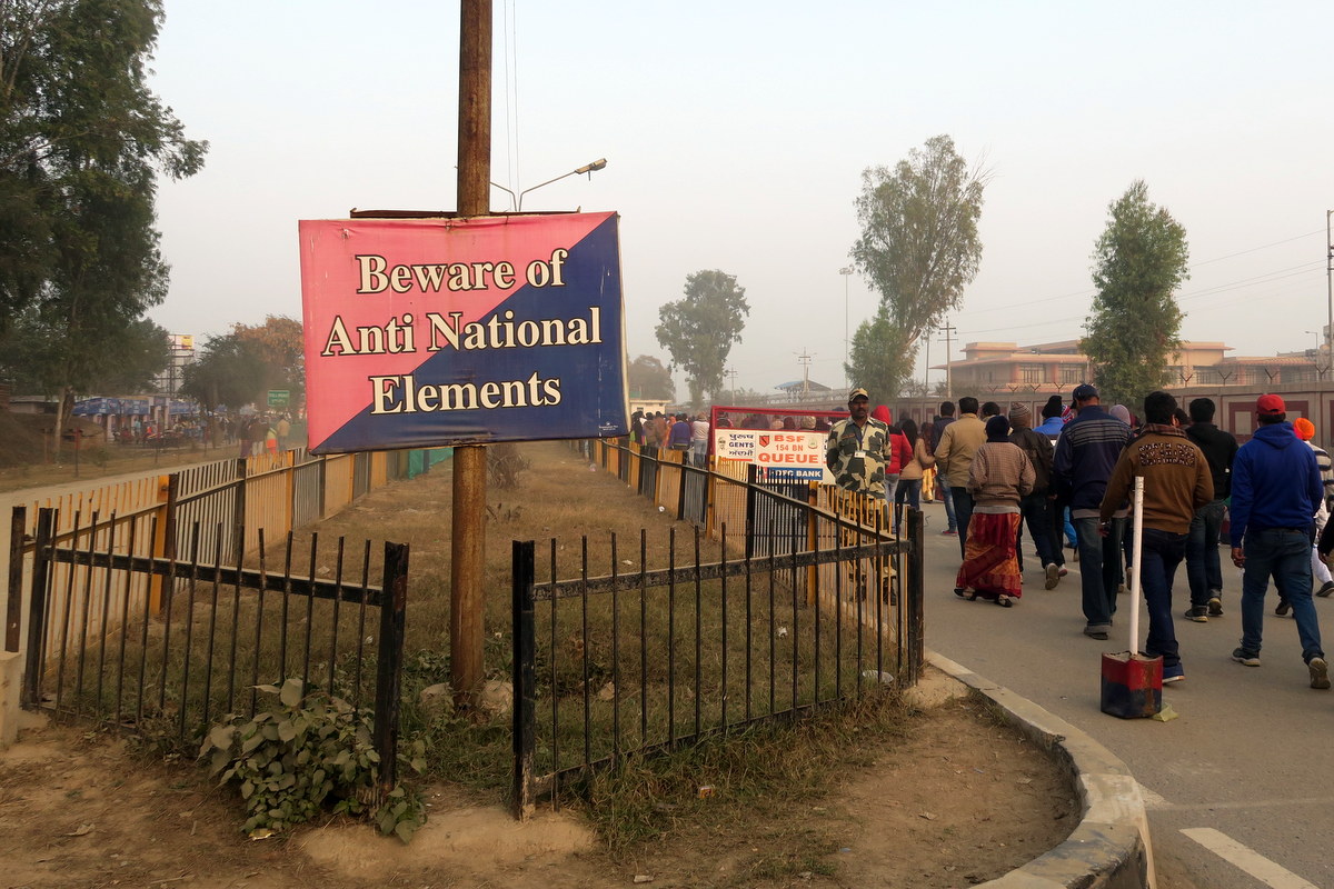 По дороге обратно в Индию висит плакат: "Остерегайтесь анти-национальных элементов!" - тут тоже с пятой колонной борются.