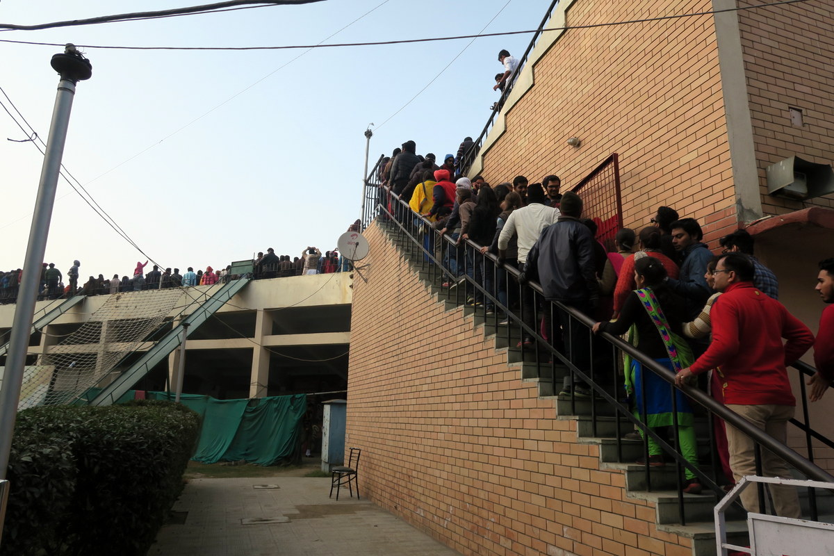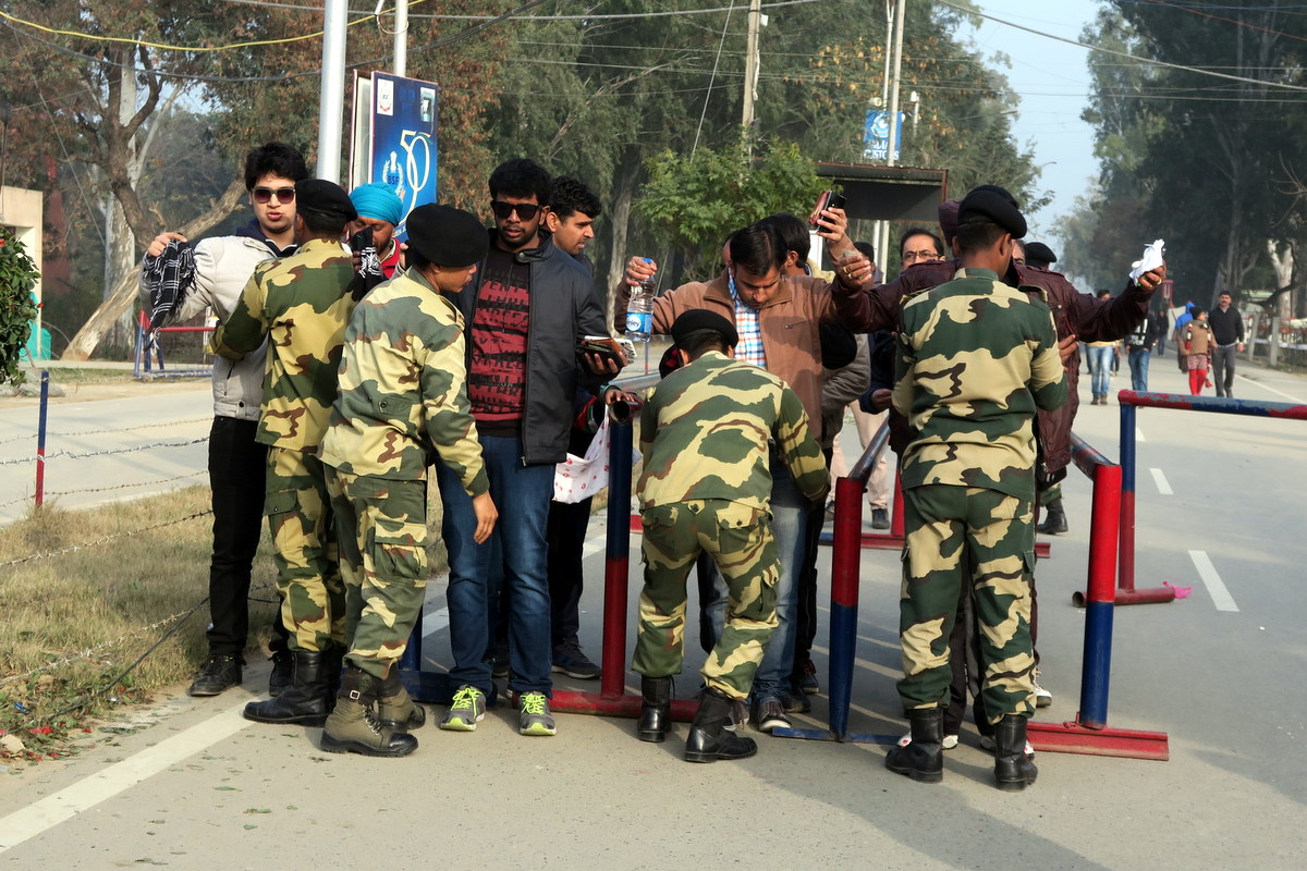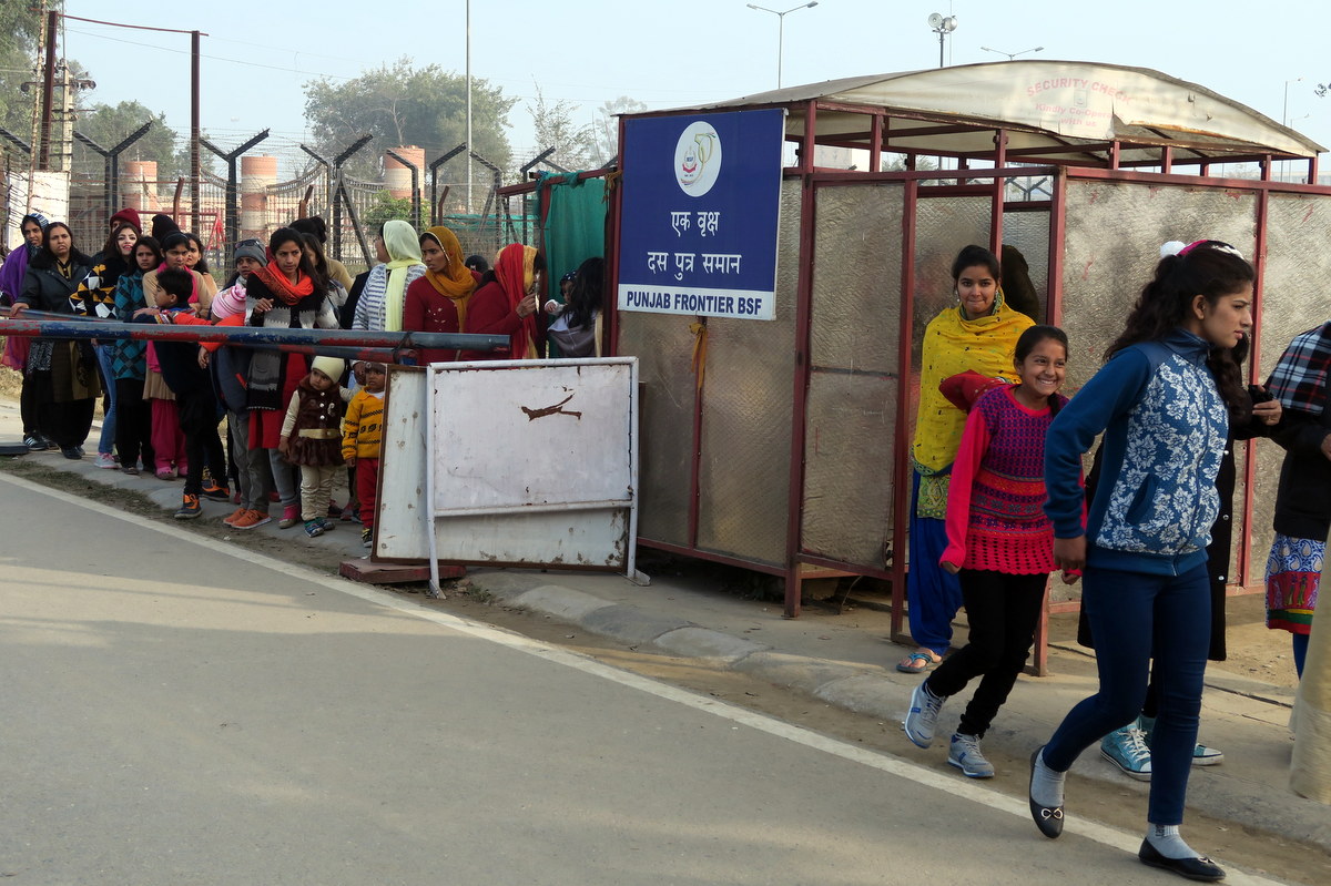 Ближе к КПП люди выстраиваются в очередь. Это одна из немногих очередей в Индии, где вас не пропустят вперёд всего лишь за то, что вы иностранец.