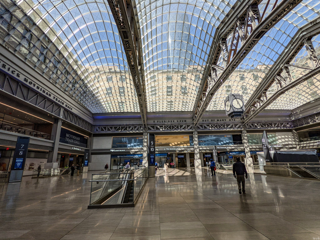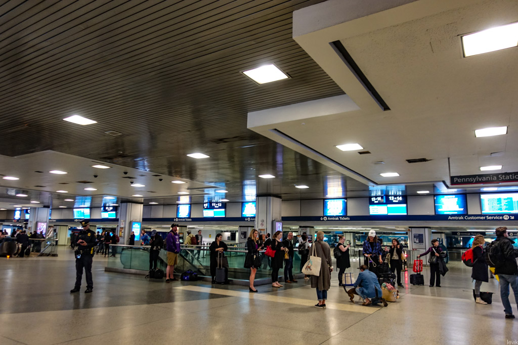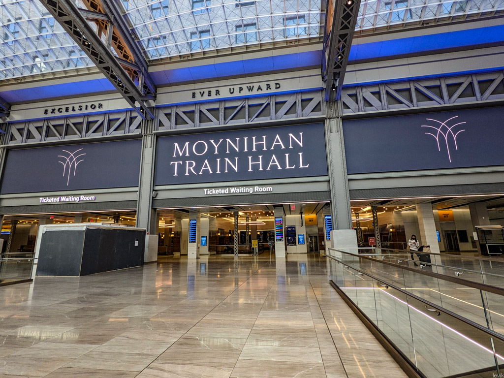 17. Его назвали в честь сенатора от штата Нью Йорк, Дэниэла Патрика Мойнихэна: Moynihan Train Hall. То есть это не вокзал и не станция, а зал для поездов.