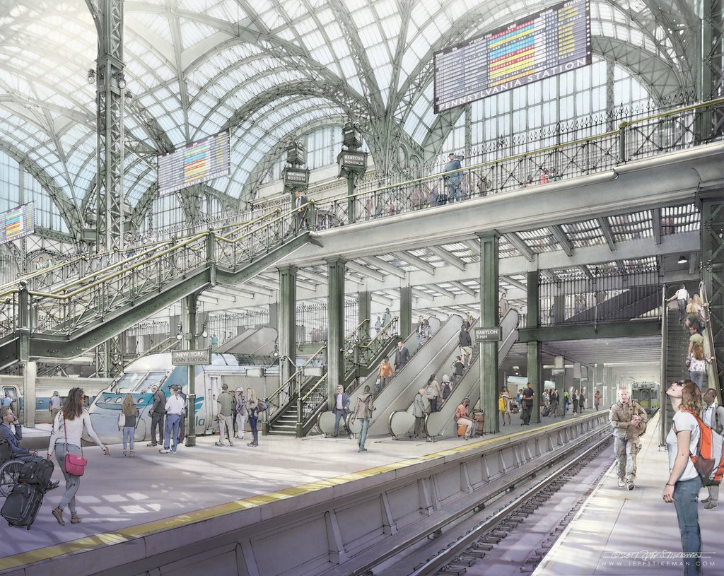 11 платформ вокзала обслуживали 21 железнодорожный путь. Расчёт был на то, что сюда будет приходить до 144 поездов в час - уже в первые же годы работы Пенн-стейшн принимал до тысячи составов в день! Пик спроса пришёлся на период Второй Мировой, когда вокзал обслуживал до 100 миллионов пассажиров за год.
