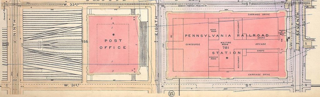 14. Его возвели в 1912, через два года после Пенн-стейшн, и оно верой и правдой служило на протяжении 90 лет. Но в 2002 году почта решила продать это здание штату Нью Йорк, и лет десять назад тут начались многофазовые работы по созданию нового "надземного" вокзала.