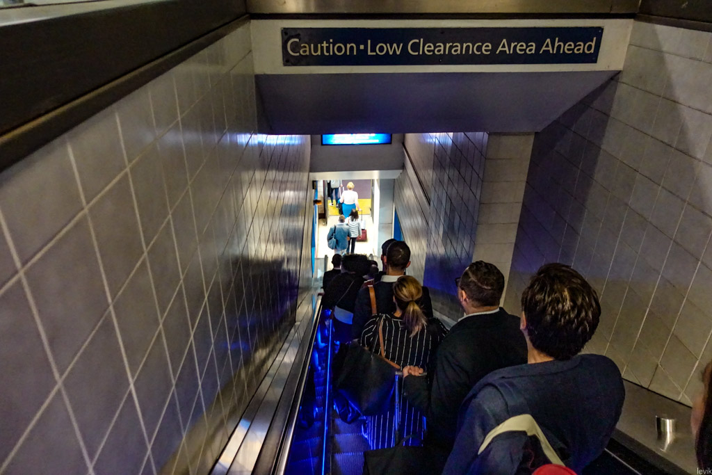 10. С подземного уровня ожидания пассажиры по узким лестницам спускаются на ещё более подземные платформы.