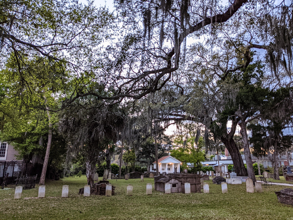 24. Здесь такое классическое кладбище, как в фильмах ужасов, с аккуратными рядами простых надгробий, и нависающие ветви деревьев подчёркивают его аутентичность.