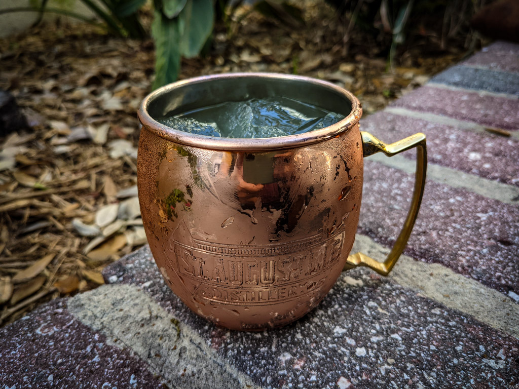 10. Мы тоже остановились в одном из заведений, чтоб освежиться классическим коктейлем с "Московским" именем - заметьте. В Сент-Огустине делают свою водку, и разумеется у них под этот коктейль есть фирменные медные кружки с названием города!