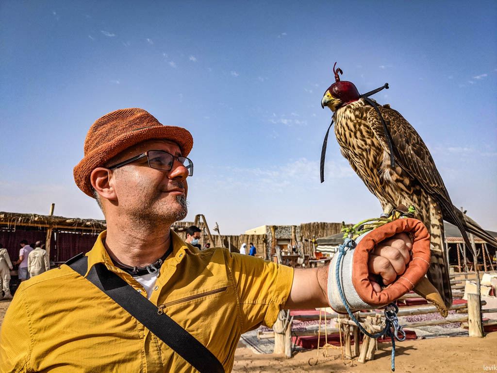 6. В пустынном лагере бедуинов меня познакомили с охотничьим сапсаном по имени Зигги.