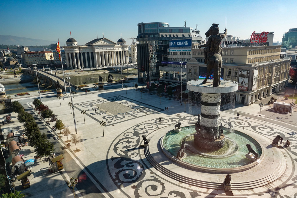 1. Разумеется, различные логотипы на фасадах и крышах зданий в центе города - это не ново, такого полно. Часто это или название бизнеса, занимающего здание (какой-нибудь там банк, и т.д.) или же реклама. Вот пример с ужасной центральной площади Скопье (столицы Северной Македонии) - тут вам и банк, и Huawei, и Кока-Кола... А если приглядеться, то можно найти и логотип T-Mobile.