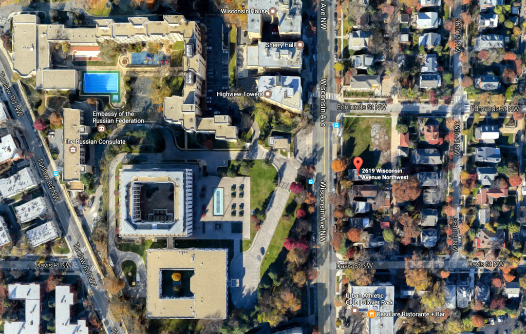 С первого взгляда этот кирпичный дом в приличном районе Вашингтона не представляет никакого особого интереса. Отдельно-стоящую двухэтажку (плюс чердак, плюс подвал) с крыльцом и камином по адресу 2619 Висконсин Эвеню построили в 1935 году. И в общем по виду он мало отличается от сотен похожих домов, которыми окружён. А интересен он тем, что скорее всего много лет использовался ФБР для слежки за посольством Российской Федерации.