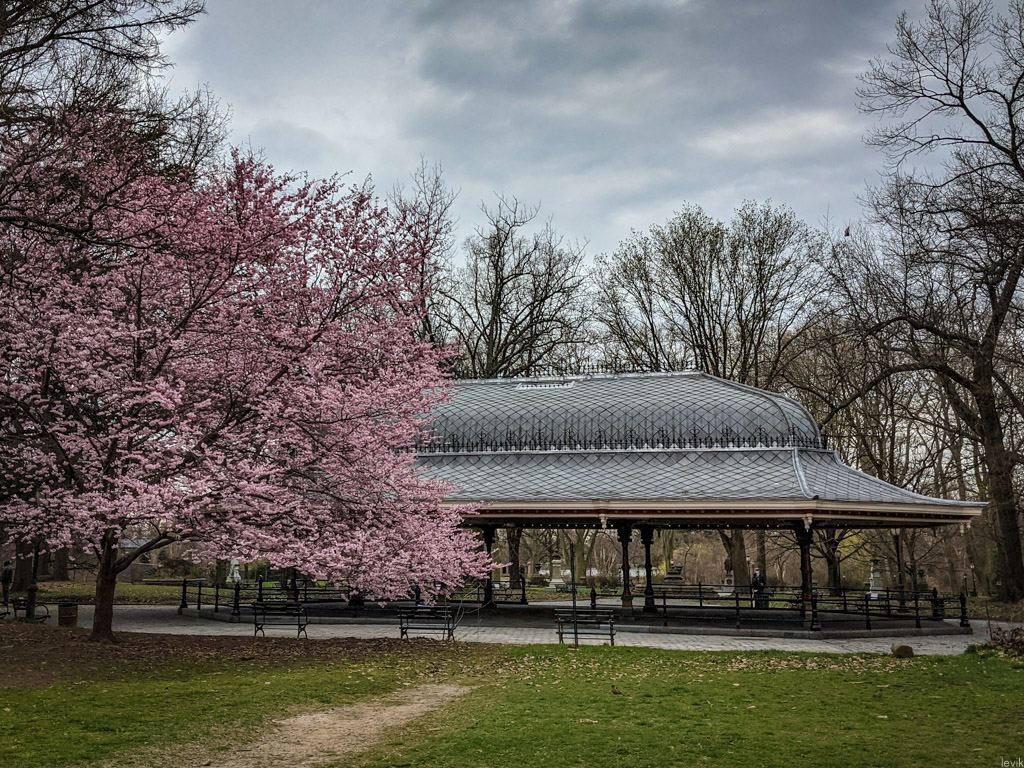 3. А это тоже в парке, но значительно ближе ко мне. Эта беседка много лет стояла за забором из-за того, что пришла в упадок. Наконец её решили отреставрировать - эти работы затянулись на год, и вот сейчас совсем недавно её открыли, в аккурат к моменту когда вокруг неё всё расцвело.