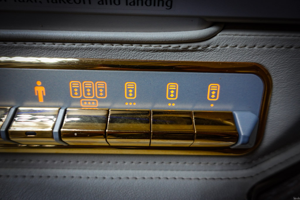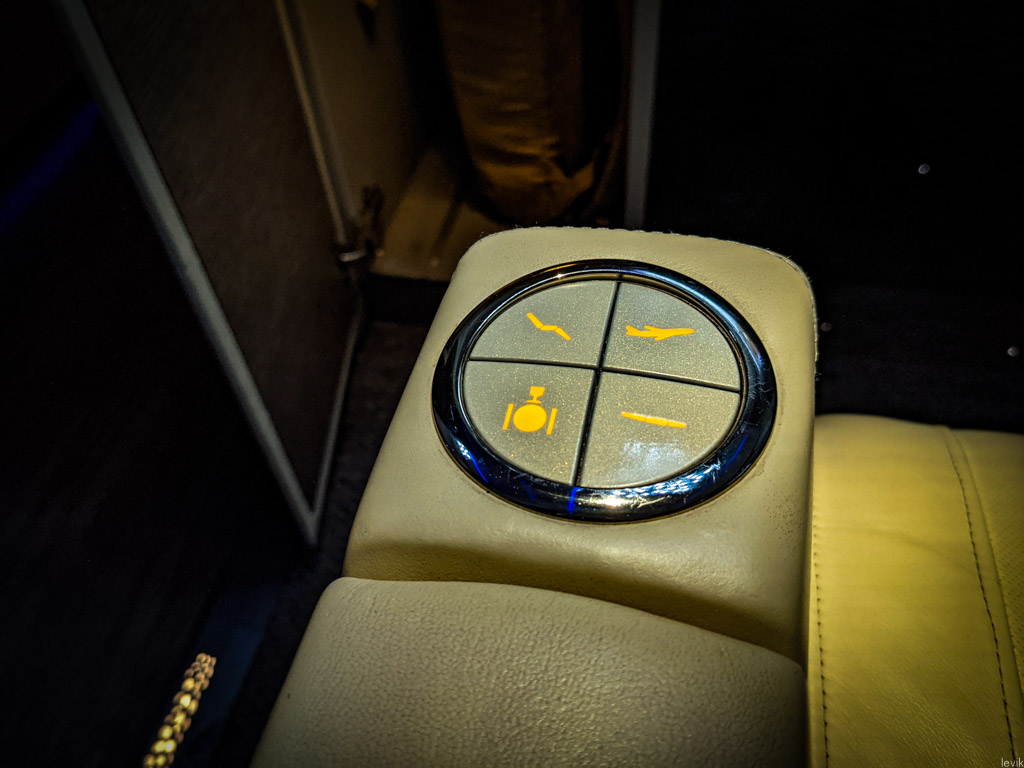 29. На одном из подлокотников кнопки управления, с помощью которых его можно разложить в кровать, или просто пододвинуть ближе к столу, чтоб поесть. Да, оно ещё немного и двигается.