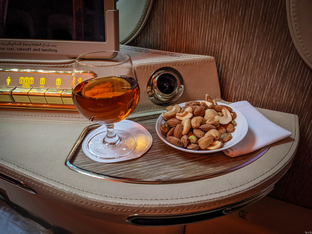 41. Из отчётов в интернете, я узнал, что тут наливают коньяк, который обычно продаётся по $500 за бутылку. Я не фанат коньяка, но не мог его не попробовать! Что можно сказать - ка не был фанатом, так и остался. Орешки, которые к нему подали, мне гораздо больше понравились.