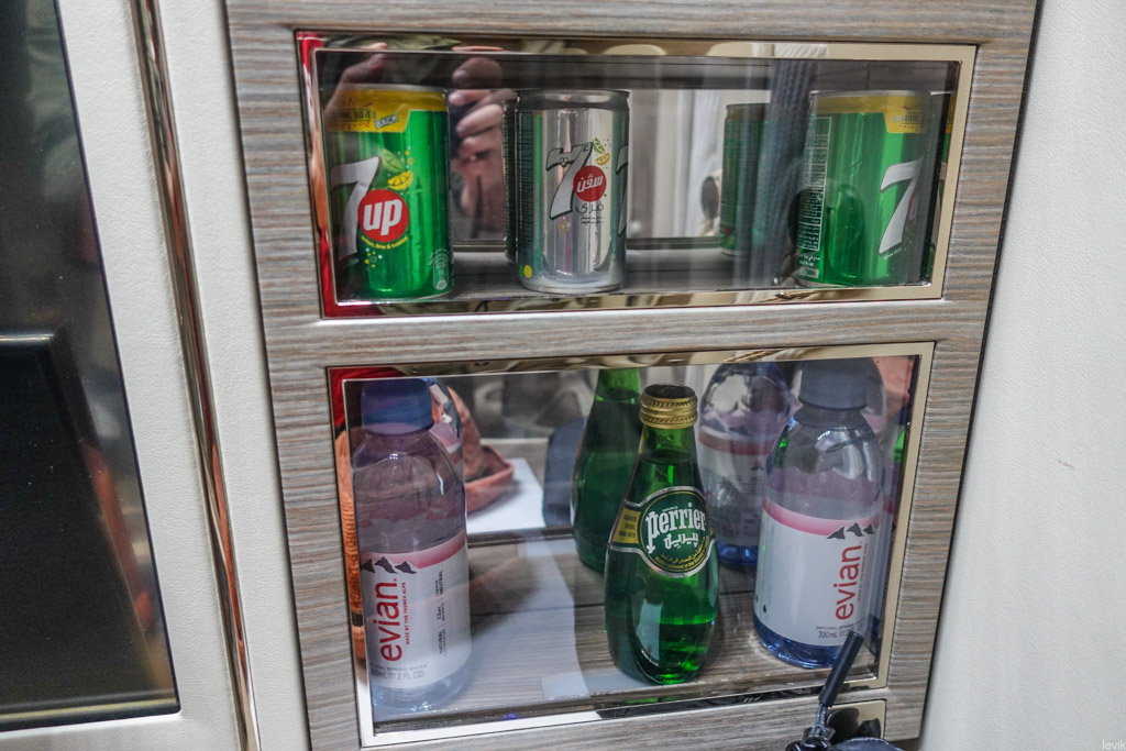 Заметьте, что тут у каждого сидения тоже есть свой мини-бар, хотя конечно поменьше.
