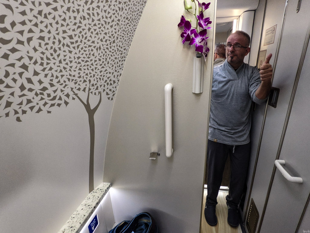 А через несколько дней после моего возвращения, Emirates объявили, что скоро вернут в США свои двухпалубные А380. Там у них первый класс предыдущего поколения, но зато на борту есть душевые. Что?! Душ в самолёте? Да, бывает и такое.