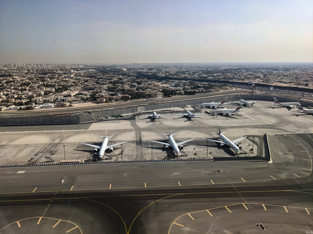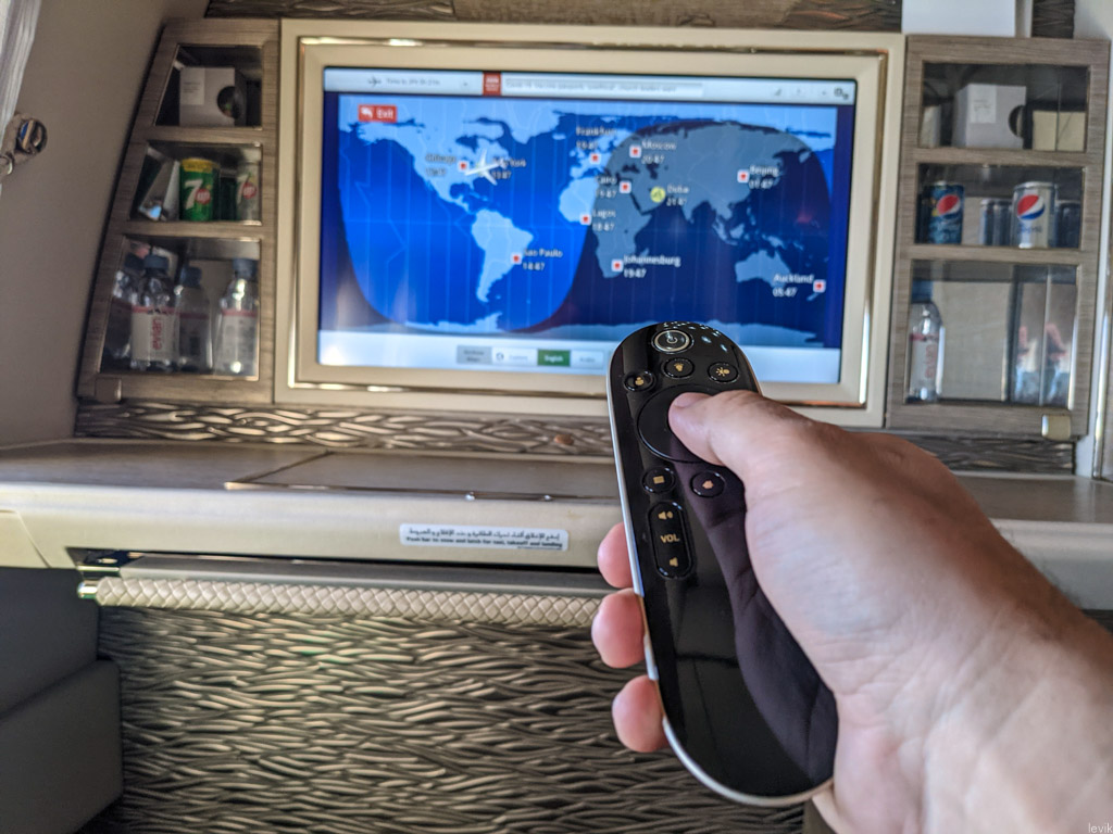 24. Главный минус таких "окон" в том, что нельзя посмотреть вверх или вниз, нельзя посмотреть в бинокль, или использовать хороший телевик. Только пиксели увеличишь. Картинка остаётся неизменной. Вот мы когда шли на посадку в Дубае, там за окном был бы отличный вид на весь его небоскрёбный центр, во главе с Бурдж-Халифой, но на планшетном окне всё это выглядело пикселизированной размазнёй. Так что, если вам важна красивая картинка из окна, то не выбирайте эту среднюю каюту в первом классе Emirates. Лучше уже уступить им немного объёма каюты, и получить за это красивый вид из окна.