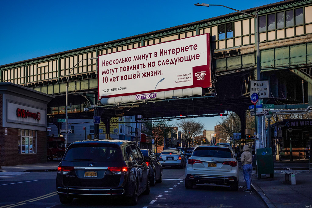 И в каждой переписи, начиная с 1950 года, Нью Йорк терял мандаты в Конгрессе. Причём потеря всего одного конгрессмена в этот раз - исключение. После 1980 делегация штата уменьшилась на пять конгрессменов; после 1990 на три; а все остальные переписи с 1950 по 2010 обошлись нам в два мандата. То есть можно сказать, что на этот раз отставание Нью Йорка от страны достигло исторического за 70 лет минимума! Но это ещё не всё: оказывается, что если бы Нью Йорк набрал ещё 89 человек, то при равных результатах других штатов, мы бы остались при своих, а вместо нас конгрессмена забрали у Миннесоты. Это подчёркивает, насколько важно было для каждого жителя заполнить перепись. Власти штата не зря активно рекламировали это весь год - в Бруклине даже висели биллборды на русском языке.