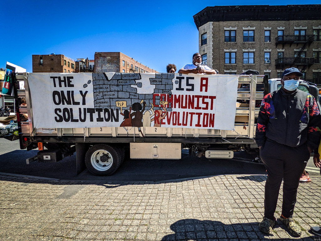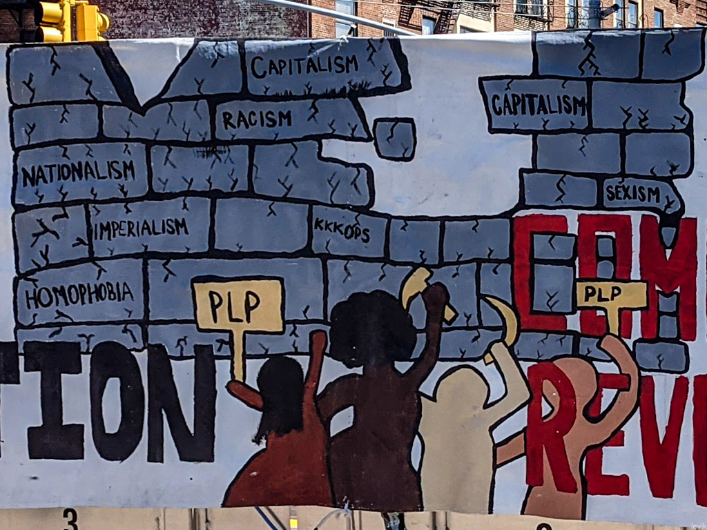 Люди на плакате держали в руках таблички "PLP" - я потом нашёл в интернете, что это такое. Аббревиатура обозначает Прогрессивно-Трудовую Партию, которую основали в США ещё в 1950х годах сторонники Марксизма-Ленинизма, неприемлющие ревизионизм к которому привёл КПСС Никита Хрущёв. Основатель решил, что главная компартия США недостаточно радикальна, и начал свою собственную партию