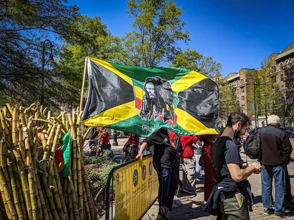 5. Рядом с коммунистическим грузовичком развевался флаг Ямайки, в центре которого был зелёно-жёлто-красный пан-африканский триколор, и портрет Боба Марли. А ещё (наверное, потому что дизайнерам показалось, что чего-то не хватает), была подпись: "Freedom".