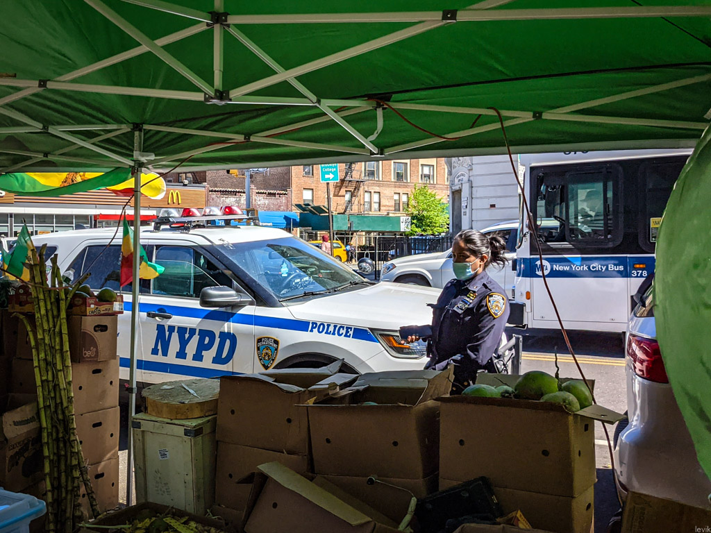 7. Я заметил, что на обочине за всем этим наблюдает полицейская тётя, явно выделенная NYPD в виде охраны всего этого мероприятия. Кстати, напомню вам, что полиция Нью Йорка неплохо отражает многонациональный характер его населения.