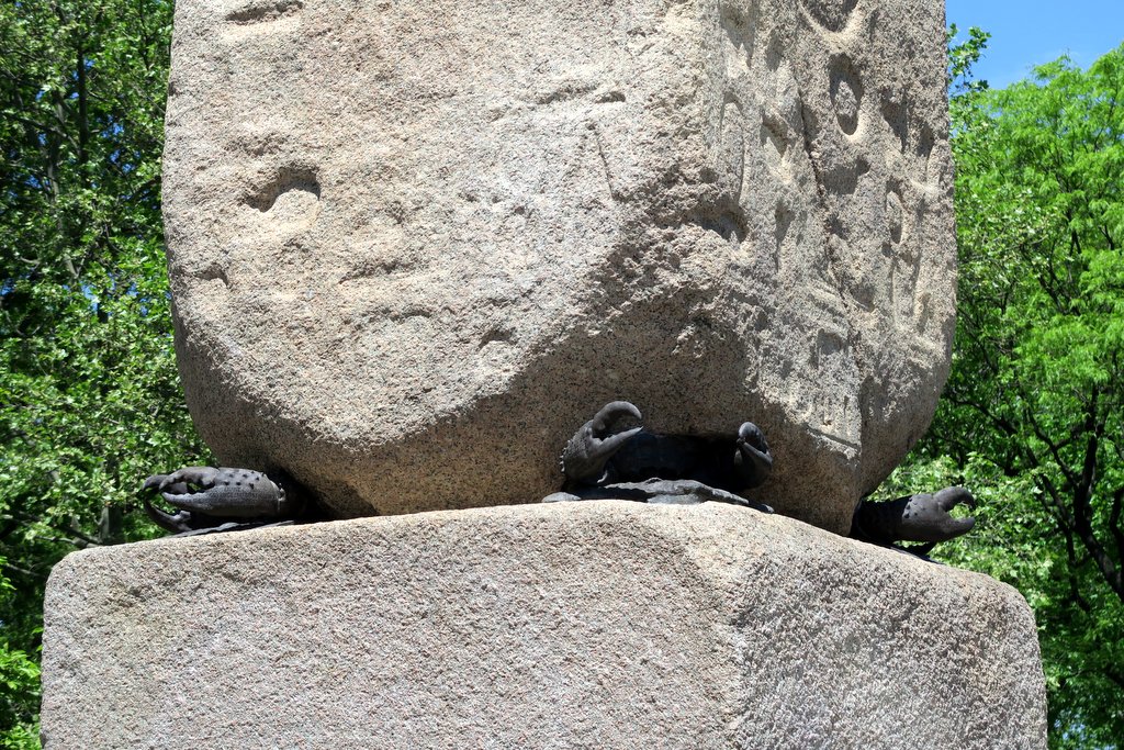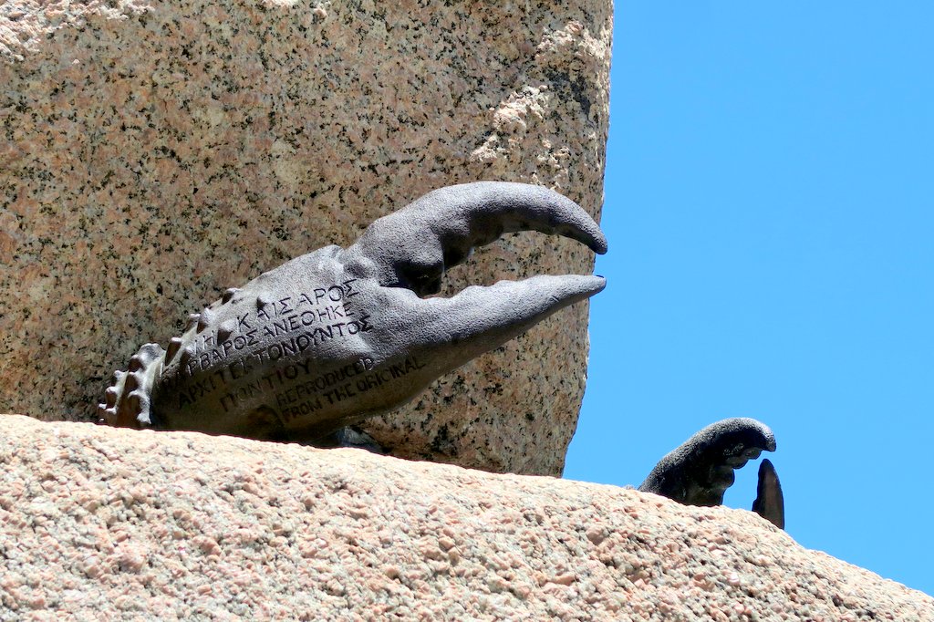 К сожалению, лишь два из четырёх бронзовых крабов остались до наших дней, и только одна из клещей выжила. Сегодня они хранятся в нью-йоркском музее недалеко от обелиска, а для установки его на новом месте, из бронзы были отлиты новые крабы - каждый весит более 400кг. Одна из клешней является репликой той, что сохранилась - на ней по гречески написано о том, как римляне установили обелиски в Александрии:
