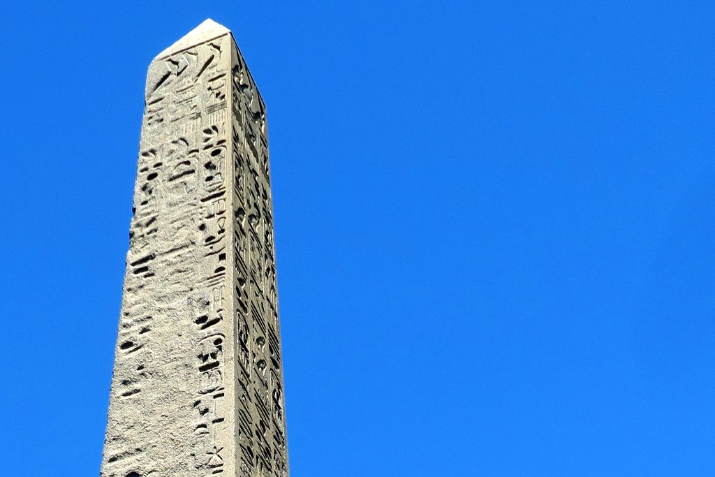 Учёные считают, что он был создан во время правления фараона Тутмоса III, приблизительно в 1500 году до нашей эры! По крайней мере об этом гласят самые старые из иероглифов на обелиске. Выходит, что этому камешку сегодня почти 3,500 лет. Он и его брат-близнец были установлены фараоном в Гелиополе - таким образом Тутмос решил отпраздновать тридцать лет своего правления.