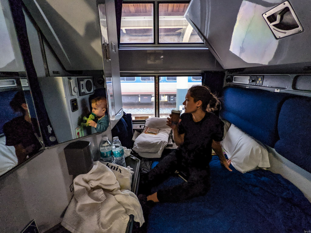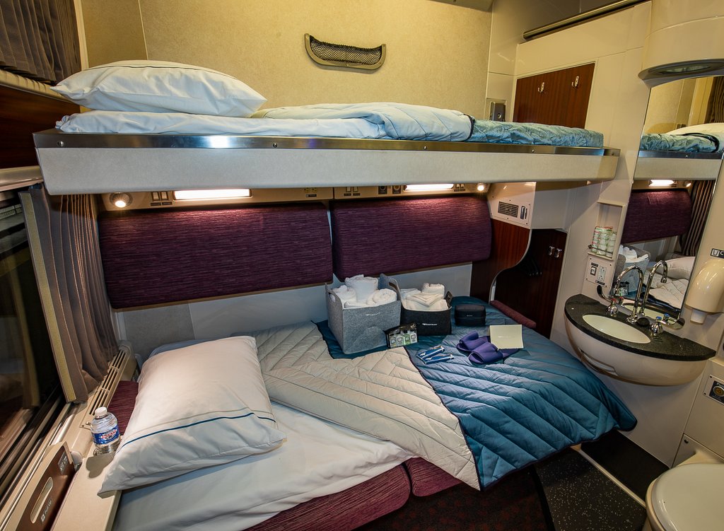 Стоят спальные железнодорожные билеты соответственно: примерно как бизнес-класс в самолёте. Сидячее место из НЙ в Калифорнию можно купить где-то за $200 в один конец - это примерно сопоставимо с билетом на самолёт в экономе, но, напомню вам - переезд займёт вместо пяти часов восемьдесят пять! А вот если вы хотите вытянуть ножки, то придётся раскошелиться. Спальная "комнатушка" (roomette) обойдётся вам в $1700, а полноценное купе на двух человек будет стоить ближе к четырём тысячам долларов!