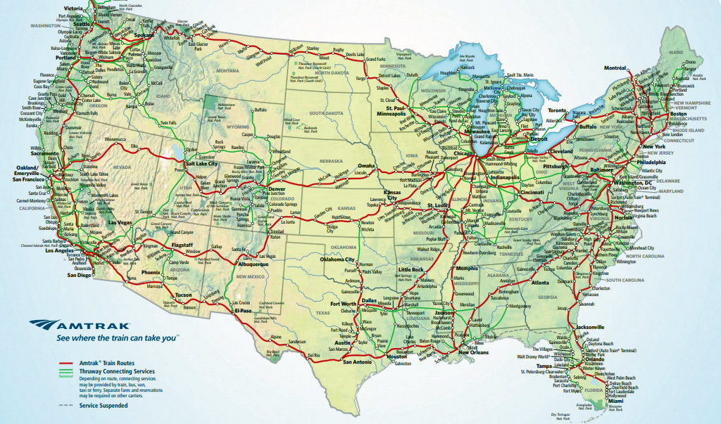 1. Железнодорожными пассажирскими перевозками по США занимается госкомпания Amtrak - она была создана в начале 70х чтобы спасти индустрию, где частники банкротились один за другим из-за того, что не могли конкурировать с авиалиниями и частными автомобилями. В этом году Amtrak празднует своё 50-летие. Наверное можно считать их американским эквивалентом РЖД.