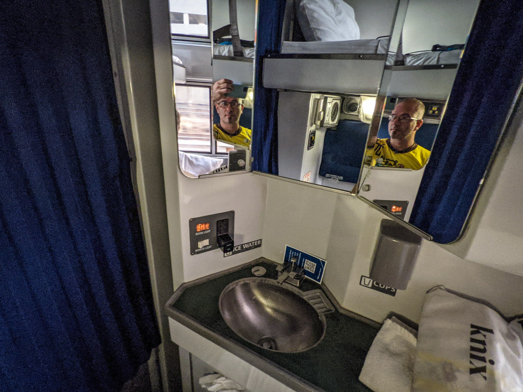 А я даже решился принять душ перед прибытием. "Как же так," подумал я - "на борту самолёта я ходил в душ, а на поезде не пойду?! Не бывать такому!"