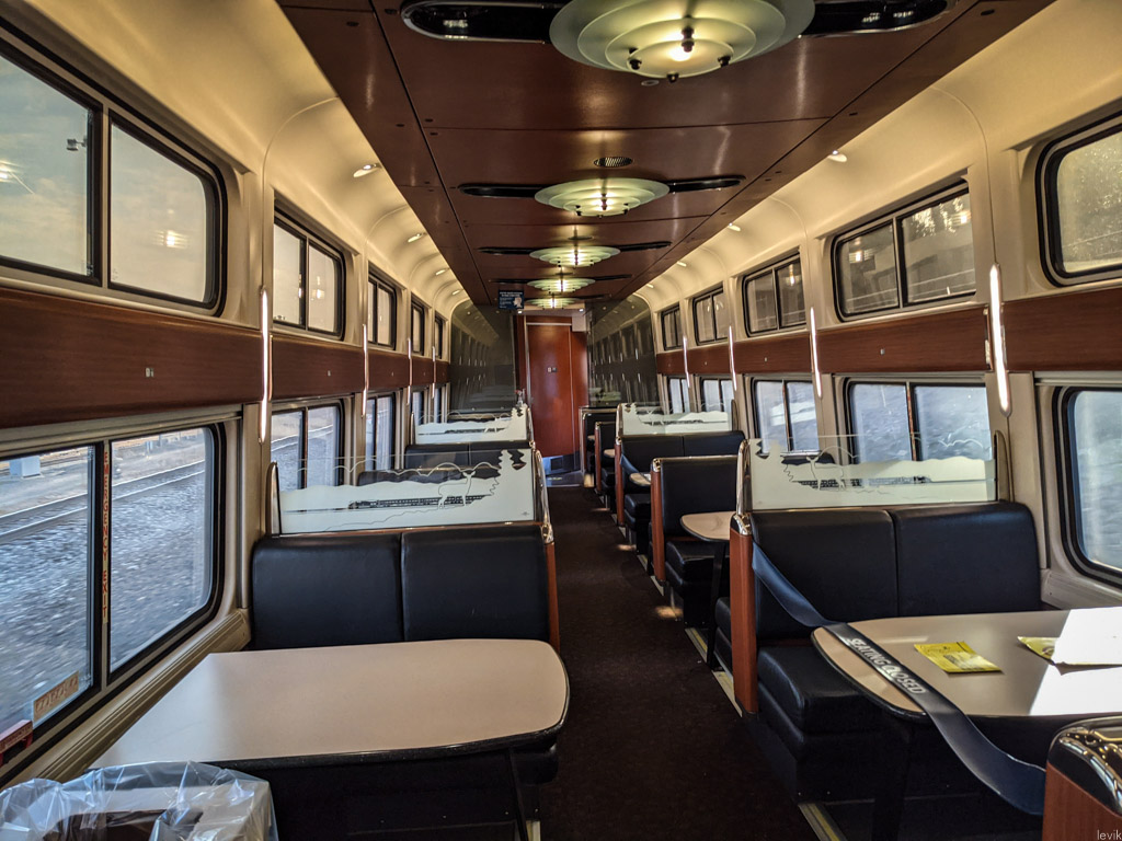 2. Чикаго важен ещё и тем, что здесь вся система делится на две части: на территории западней от города Amtrak использует двухэтажные спальные вагоны, которые компания называет Superliner. Вся ж/д инфраструктура западной части страны рассчитана на такие вагоны - туннели, мосты, и т.д. Пару лет назад мне даже довелось проехать на одном таком поезде с товарищем, и насладиться видами со второго этажа панорамного вагона-салона.