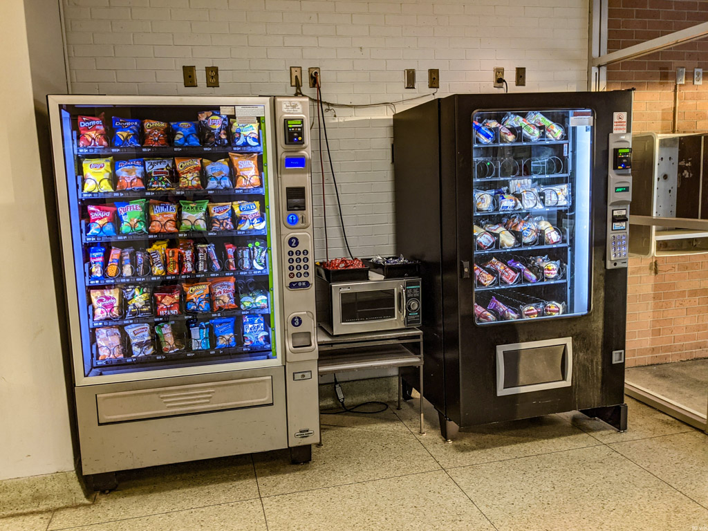 7. Вот так выглядит железнодорожный общепит: два торговых автомата с разными чипсами и батончиками. Даже никакого кафе тут нет.